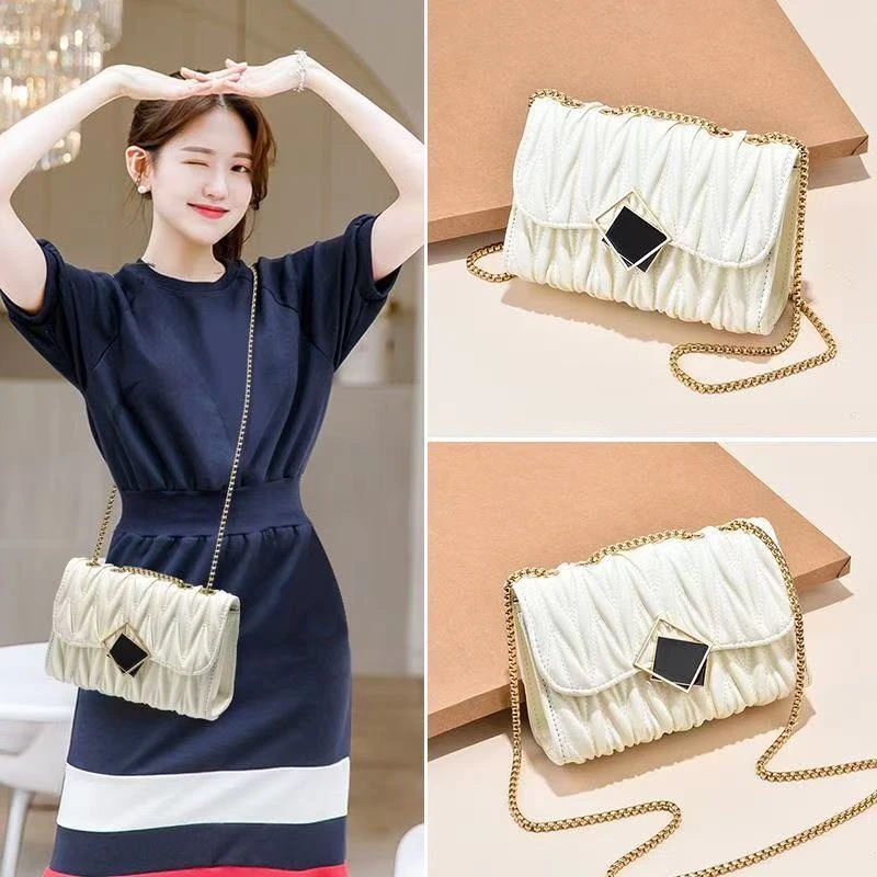 包包女高级感洋气单肩包褶皱斜挎包百搭时尚链条包